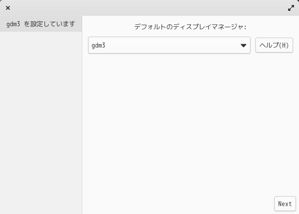 インストール時に、ディスプレイマネージャの選択を迫られますが、「GNOME」なので「gdm3」を選択します。