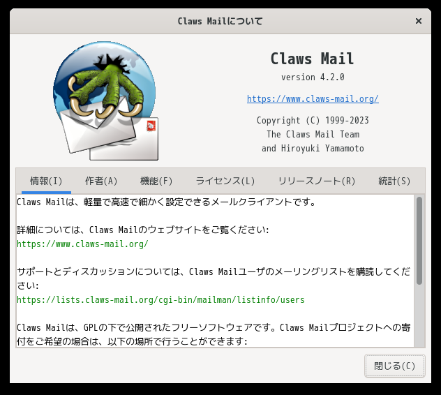 elementary OS - 8.0.1 - GNOME - メールクライアント Claws Mail
