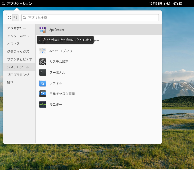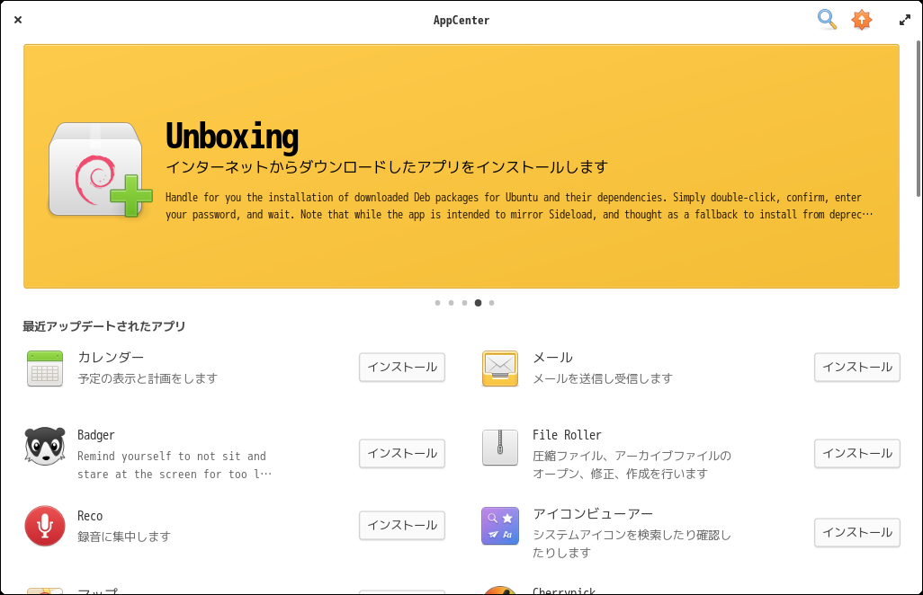 パッケージ管理フロントエンドとして「AppCenter」という独自の名称のものがインストールされています。