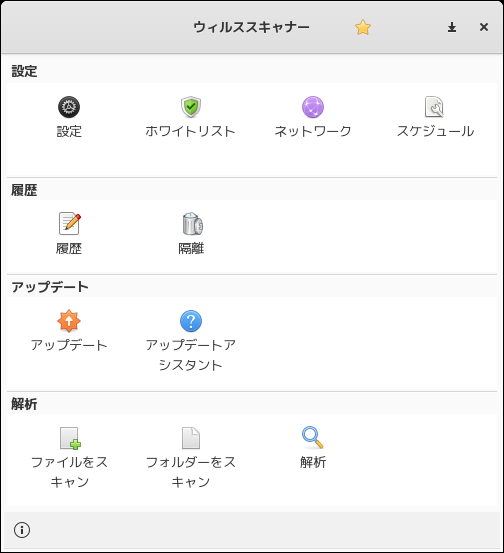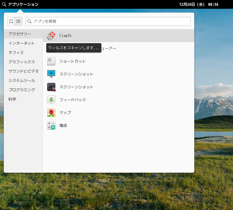 操作については「デスクトップ環境構築 - 共通事項 - アンチウイルスソフト ClamTk」をご参照ください。