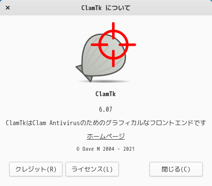 1. 概要 「ClamTk」は、「GUI」で操作するアンチウィルスソフトです。 2. インストール 「Synaptic」で、「clamtk」を検索して、インストールします。 3. 起動 「アプリケーション」→「アクセサリ」→「ClamTk」