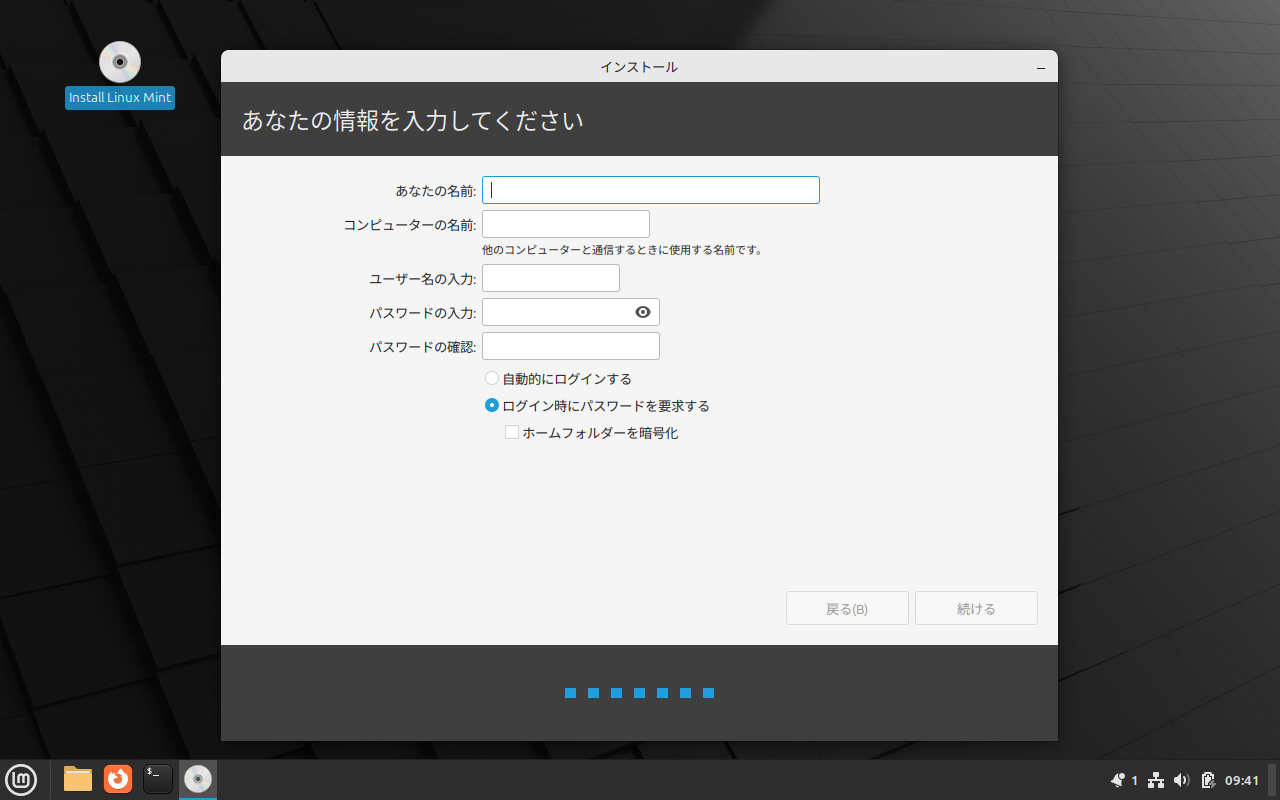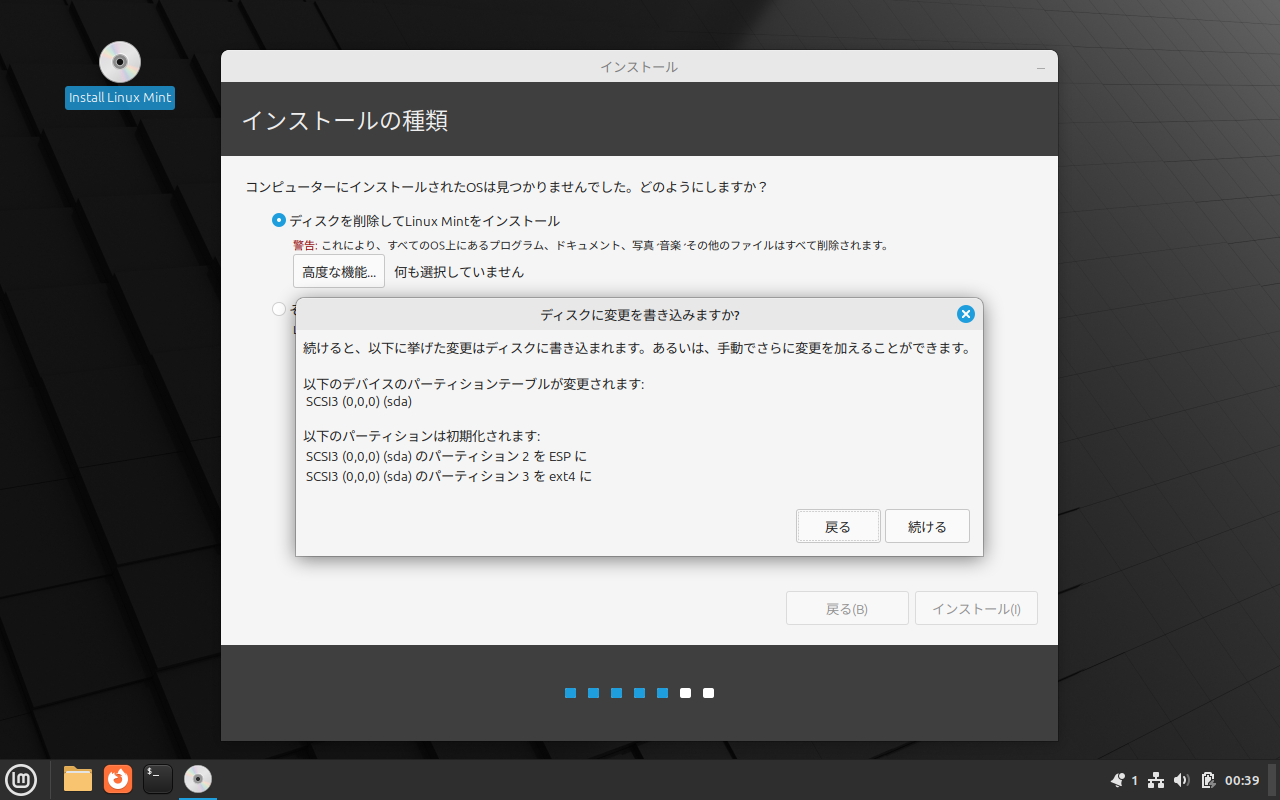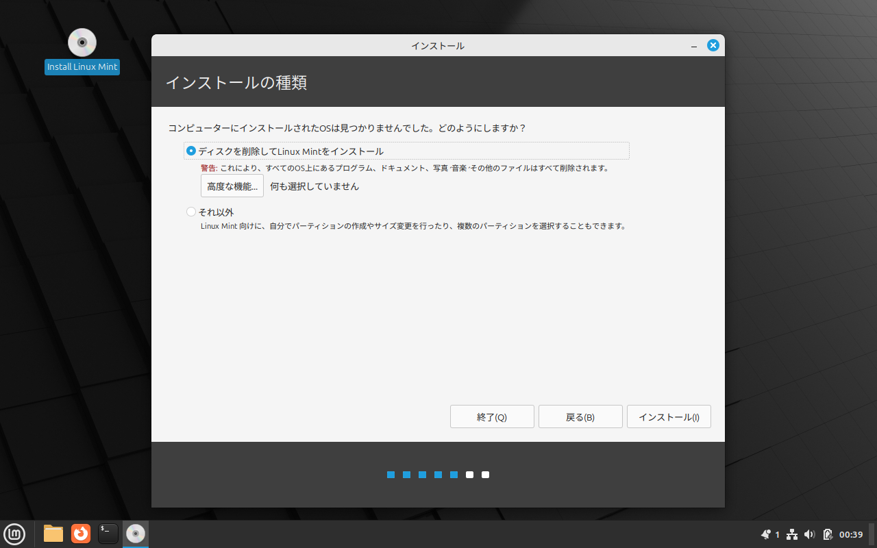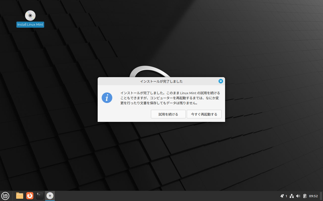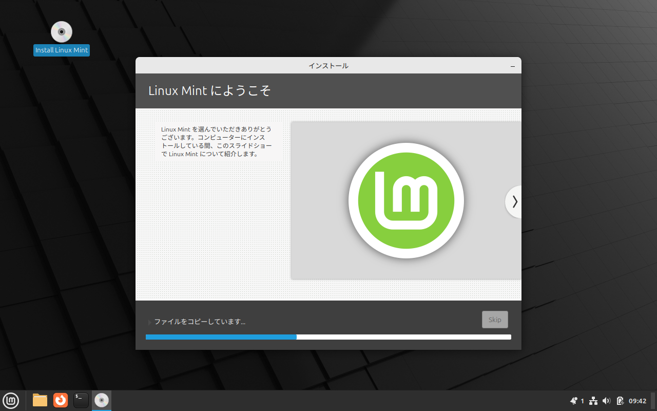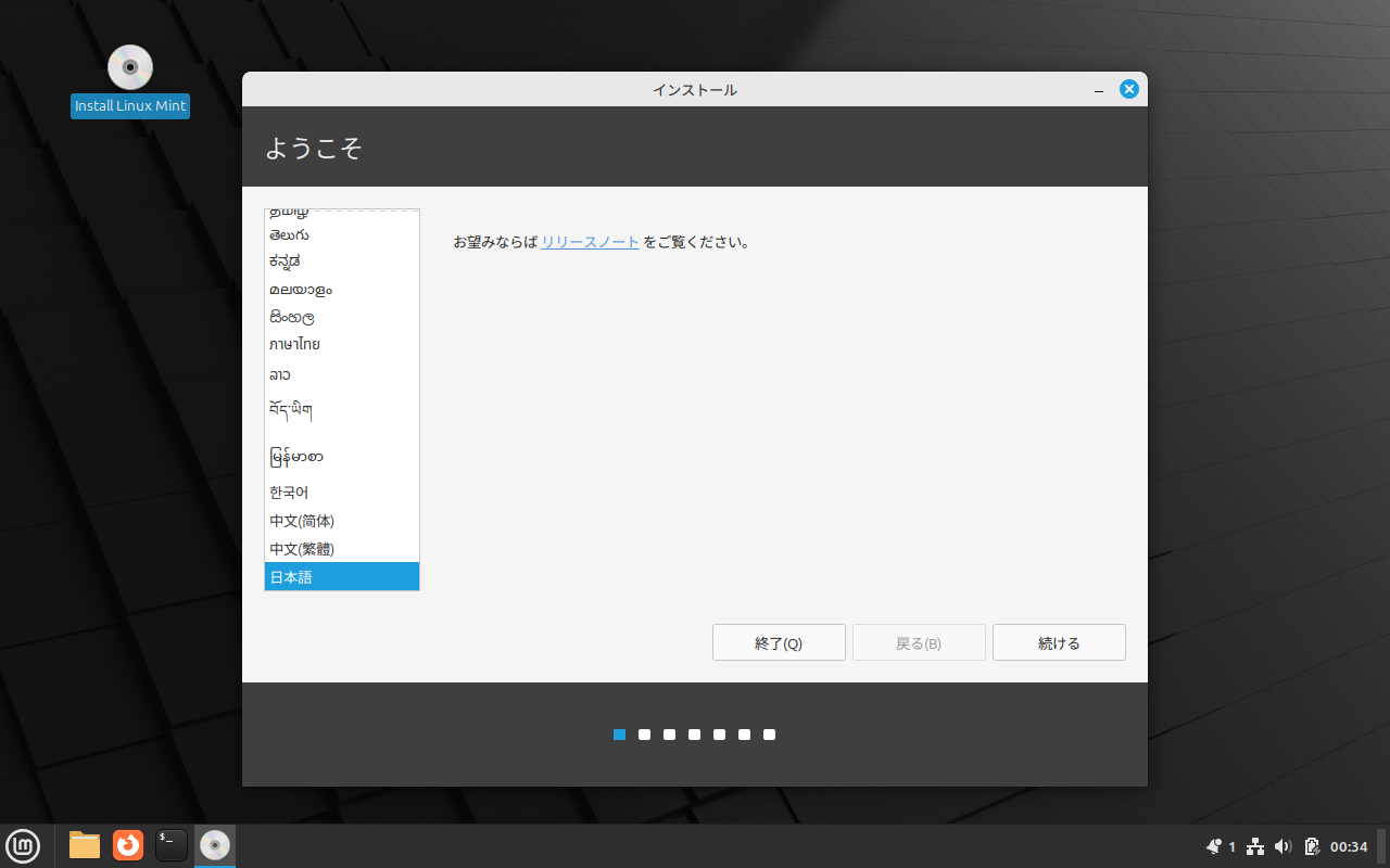 「DVD」のアイコン「Install Linux Mint」を開きます。