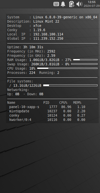「conky」は、「Unix」「Linux」で動作する、タスクマネージャです。