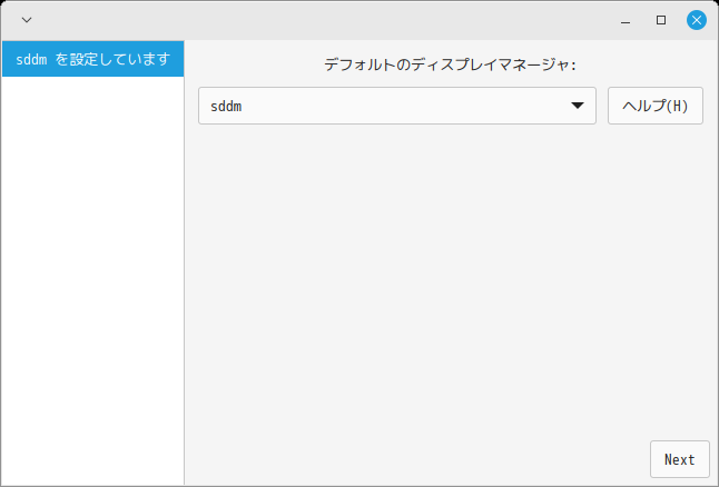 デフォルトのディスプレイマネージャをきかれるので「sddm」を選択します。