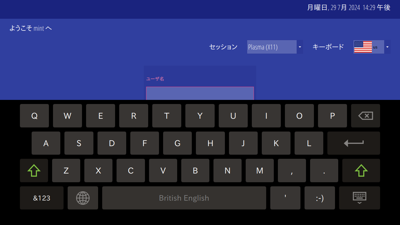 このまま、ログインすれば、「KDE」へログインできます。