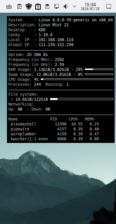 詳細は、「Conky - Wikipedia」をご参照ください。