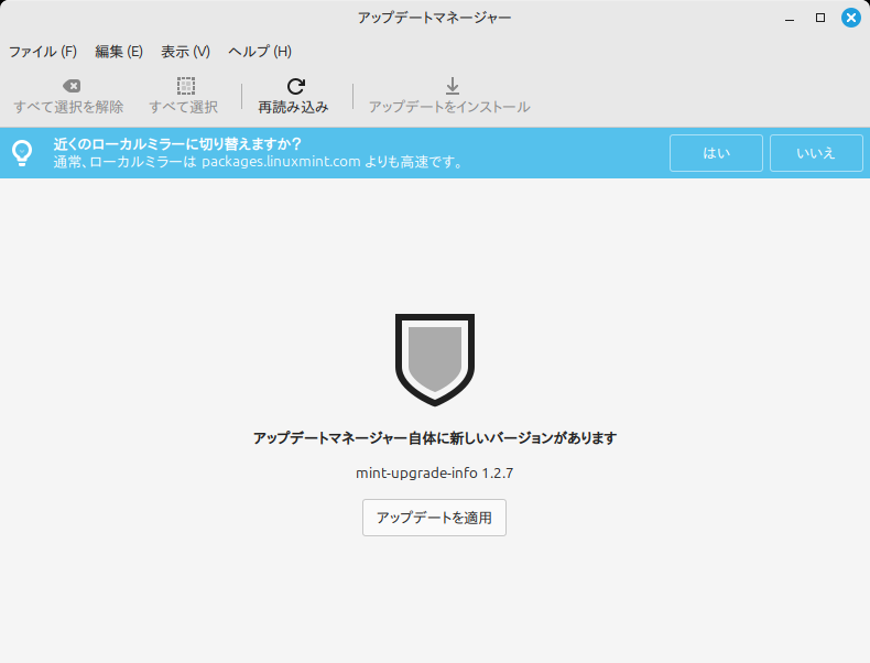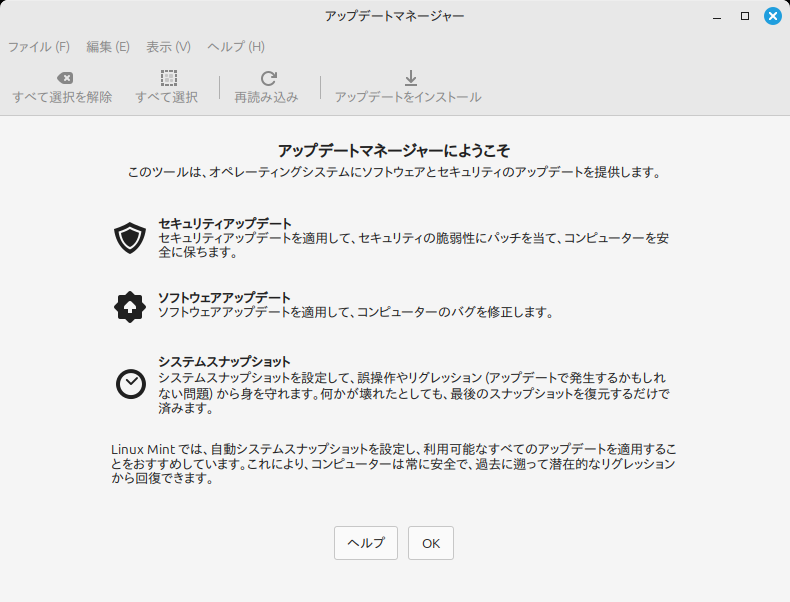 Mint - 22.1 - 共通事項 - インストール - アップデートマネージャ
