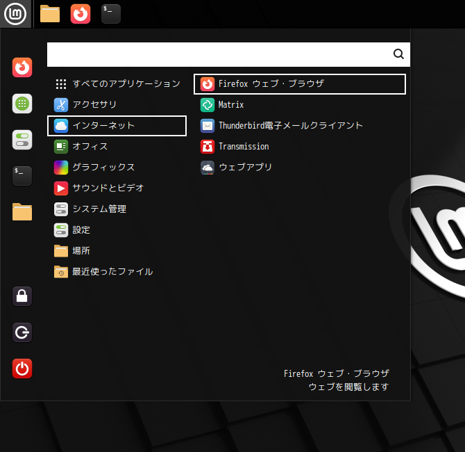 Mint - 22.1 - Cinnamon - ブラウザ Firefox