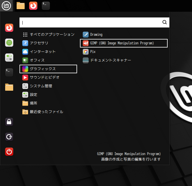 Mint - 22.1 - Cinnamon - 画像編集ソフト GIMP