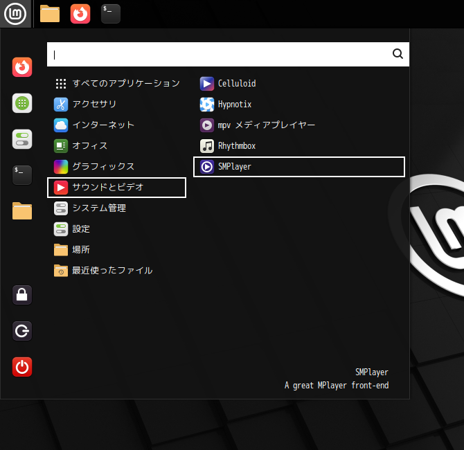 Mint - 22.1 - Cinnamon - メディアプレイヤー SMPlayer