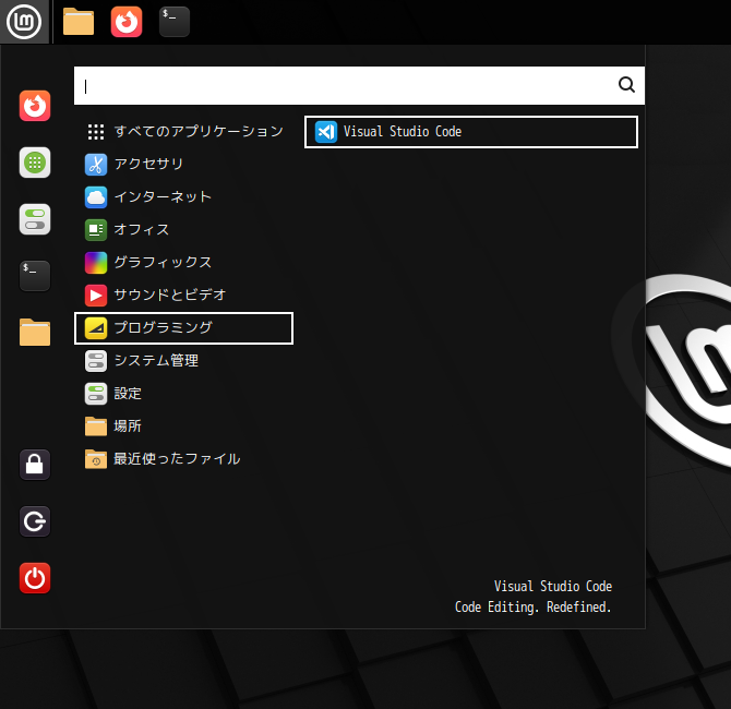 Mint - 22.1 - Cinnamon - 開発環境 Visual Studio Code