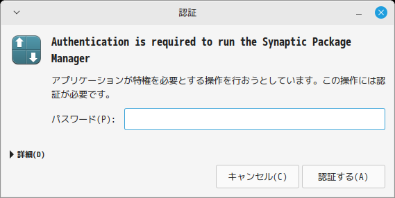 パスワードを入力して。 「認証する」 初回起動時は巨大なダイアログが表示されます。 起動直後の状態です。 2025年1月20日の時点で、下記のバージョンでした。 |
