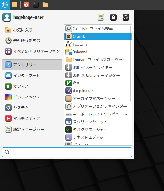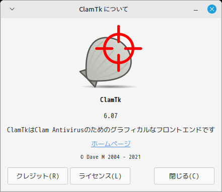 1. 概要 「ClamTk」は、「GUI」で操作するアンチウィルスソフトです。 2. インストール 「Synaptic」で、「clamtk」を検索して、インストールします。 3. 起動 「スタート」→「アクセサリ」→「ClamTk」