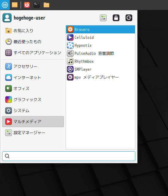 1. 概要 光ディスクライティングソフトとして、「Brasero」を使用します。 2. インストール 「Synaptic」で、「brasero」を検索して、インストールします。 3. 起動 「スタート」→「マルチメディア」→「Brasero」