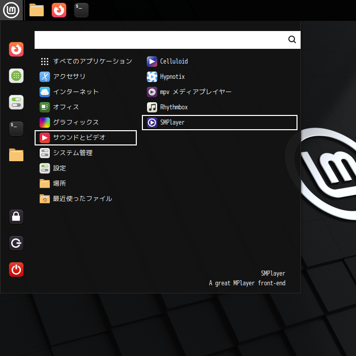 1. 概要 マルチメディアプレイヤーとして、「SMPlayer」をインストールして使用します。 2. インストール 「Synaptic」で、「smplayer」を検索して、インストールします。 3. 起動 「スタート」→「サウンドとビデオ」→「SMPlayer」
