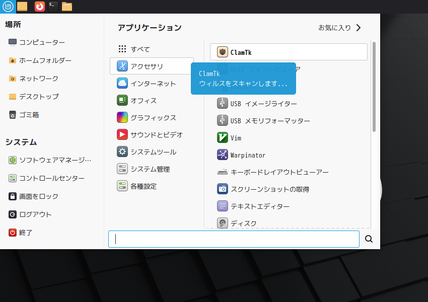 1. 概要 「ClamTk」は、「GUI」で操作するアンチウィルスソフトです。 2. インストール 「Sunaptic」で、「clamtk」を検索して、インストールします。 3. 起動 「スタート」→「アクセサリ」→「ClamTk」