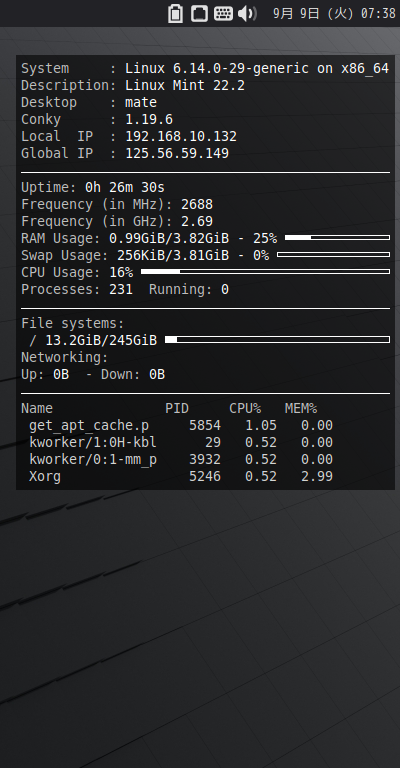Mint - 22.2 - MATE - タスクマネージャ Conky