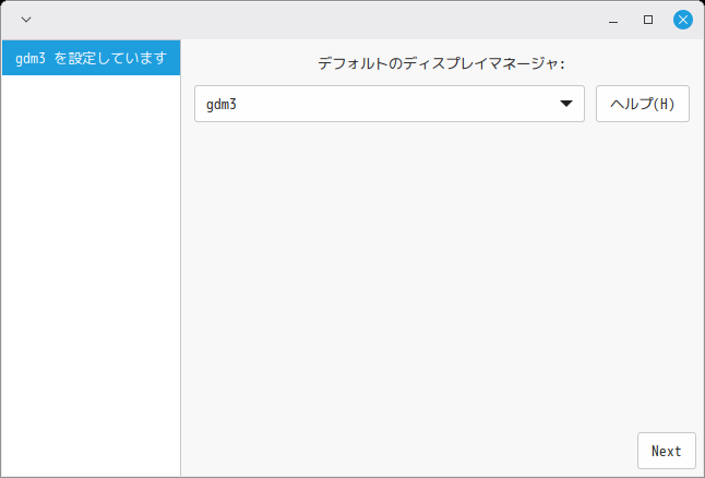 デフォルトのディスプレイマネージャをきかれるので「gdm3」を選択します。