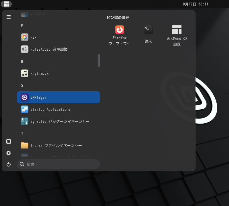 1. 概要 マルチメディアプレイヤーとして、「SMPlayer」を使用します。 2. インストール 「Synaptic」で、「smplayer」を検索して、インストールします。 3. 起動 「スタート」→「S」→「SMPlayer」