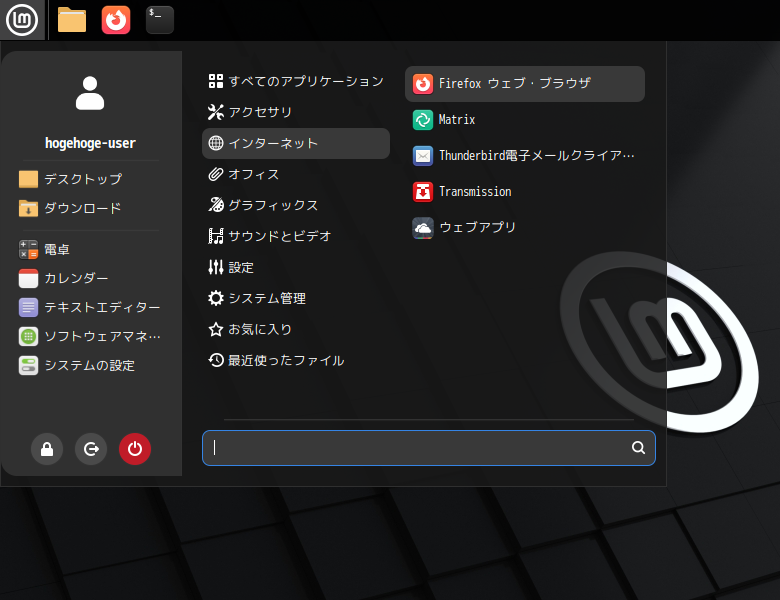 1. 概要 ブラウザとして、「Firefox」がデフォルトでインストールされています。 日本語化されていますので、「Firefox」をそのまま使用します。 2. 起動 「スタート」→「インターネット」→「Firefox」