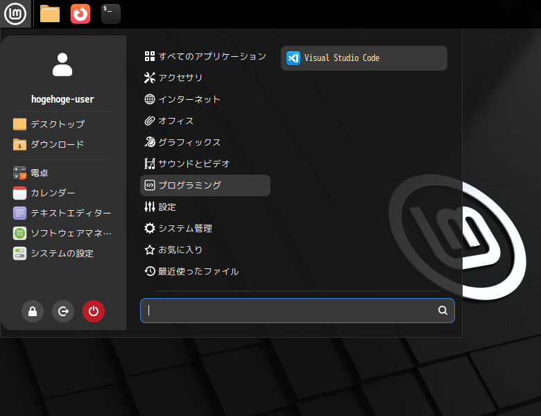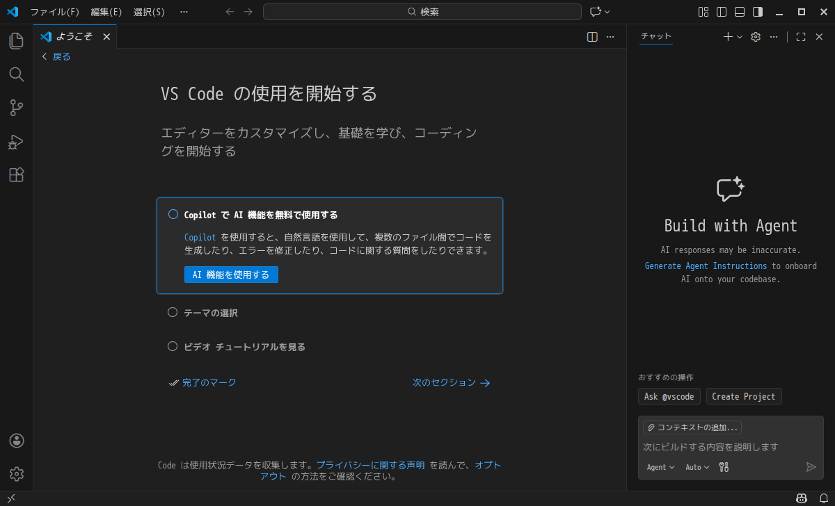 「スタート」→「プログラミング」→「Visual Studio Code」