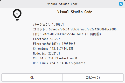 「Visual Studio Code - インストール・更新」の「Ubuntu」の手順でインストールします。