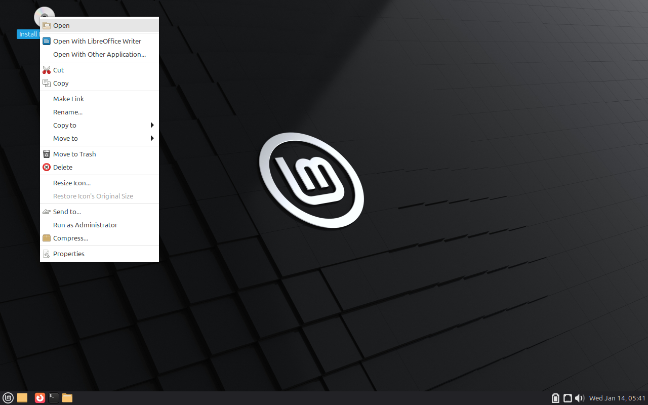 1. 概要 インストールについては「Mint - 22.3 - 共通事項」をご参照ください。 2. インストール インストール開始時の画面です。 デスクトップ上のインストーラを右クリックして「Open」