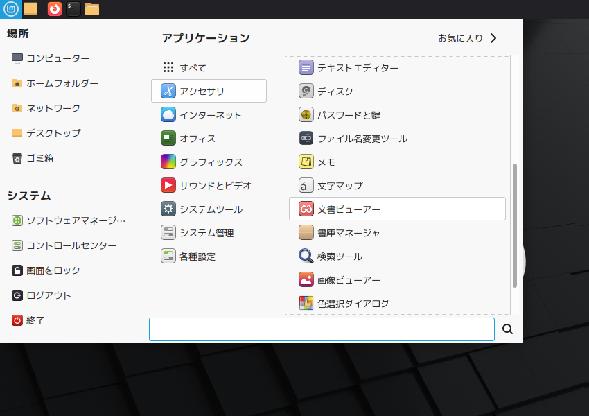 1. 概要 ドキュメントビューアとして、「Xreader」を使用します。 「MATE」なのに、何故か「Xreader」がデフォルトでインストールされています。 2. 起動 「スタート」→「アクセサリ」→「文書ビューアー」