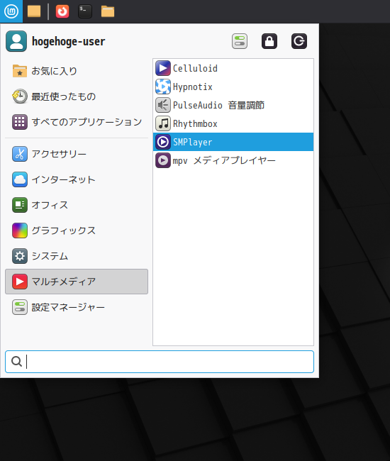 1. 概要 マルチメディアプレイヤーとして、「SMPlayer」をインストールして使用します。 2. インストール 「Synaptic」で、「smplayer」を検索して、インストールします。 3. 起動 「スタート」→「マルチメディア」→「SMPlayer」