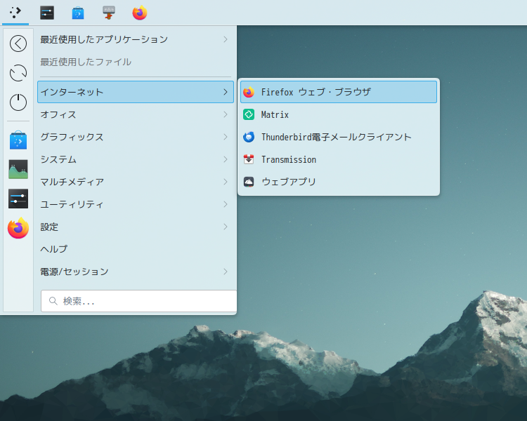 ブラウザとして、「Firefox」がデフォルトでインストールされています。  日本語化されていますので、「Firefox」をそのまま使用します。