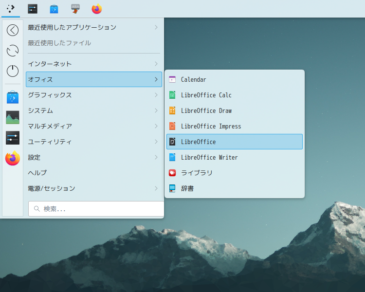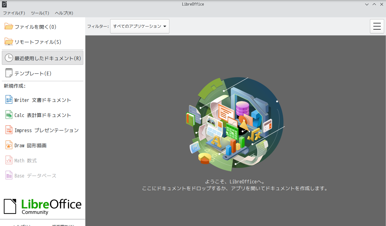 1. 概要 オフィススイートとして「LibreOffice」を使用します。 「LibreOffice」は、デフォルトでインストールされ、日本語化されています。 2. 起動 「スタート」→「L」→「LibreOffice」
