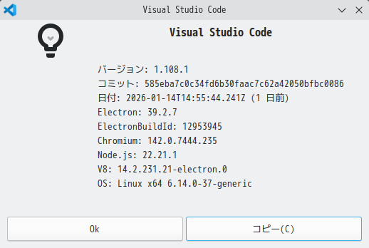 「Visual Studio Code - インストール・更新」の「Ubuntu」の手順でインストールします。