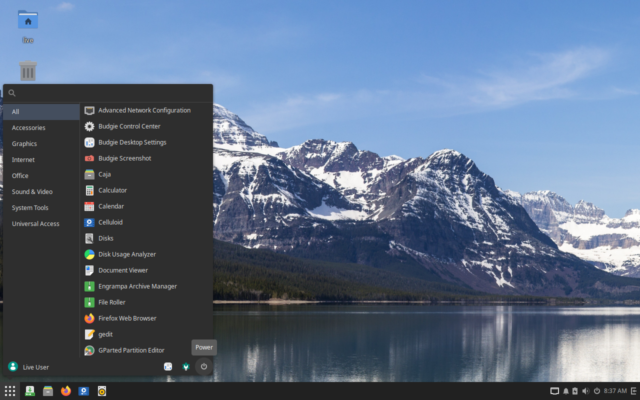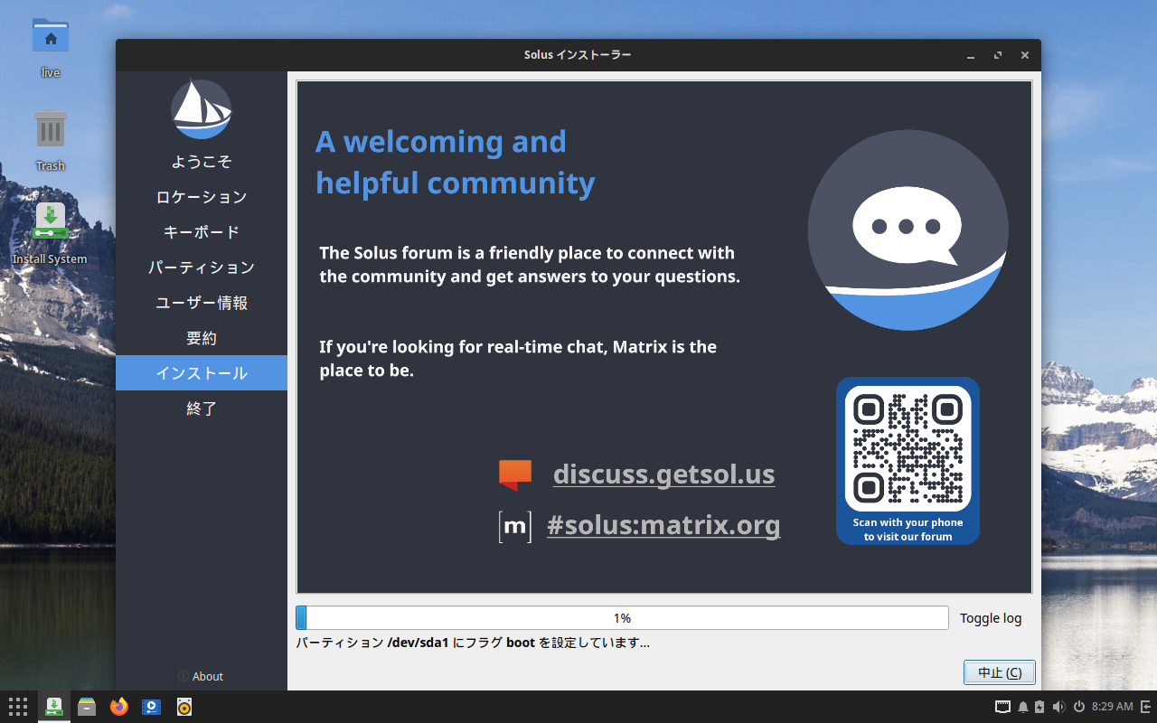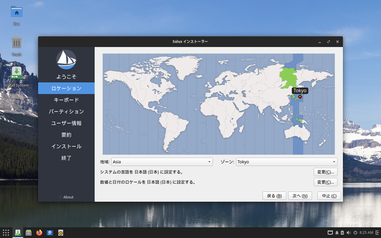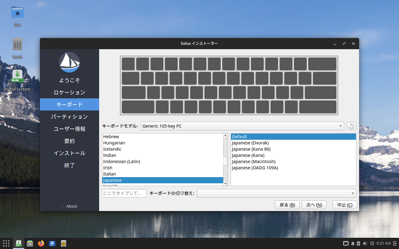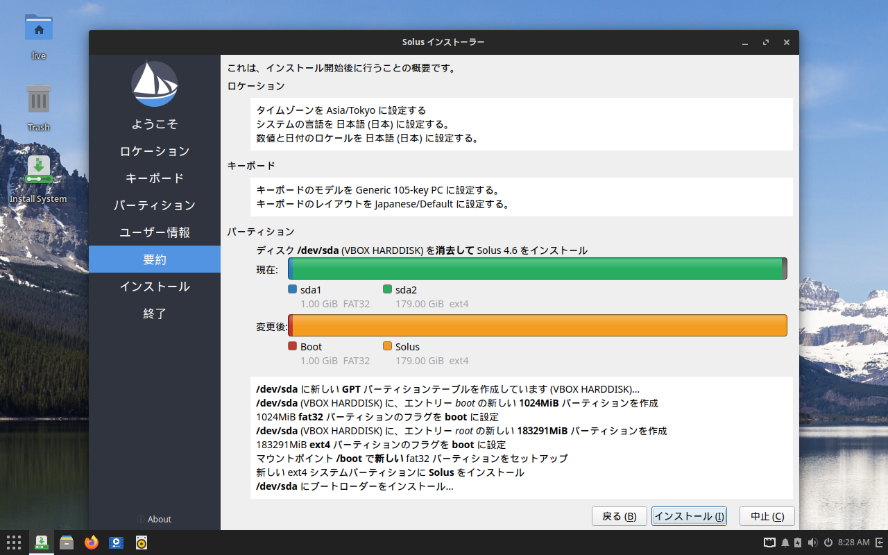 以下は、「Solus 4.6 BUDGIE」を「VirtualBox 7.1.2」上にインストールしたものです。