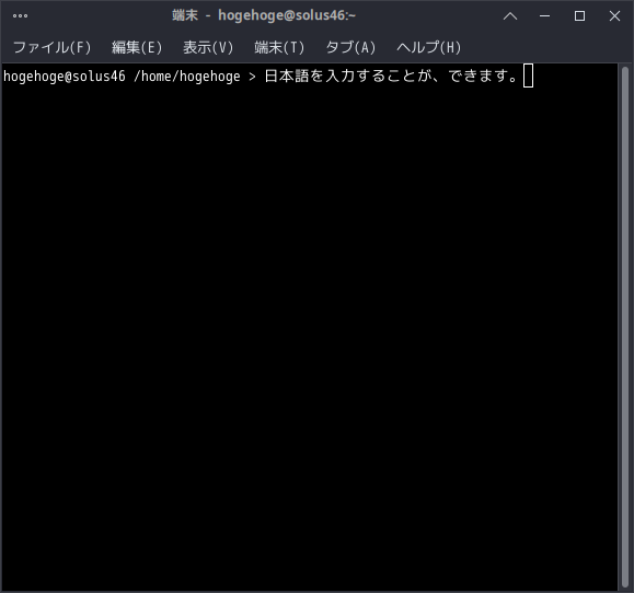 1. 概要 日本語入力として、「fcitx-mozc」を使用します。 2. インストール 「BUDGIE」で何故か「solus-sc」でインストールすると、再起動できなくなったので。 「root」ユーザ権限で。 eopkg install -y fcitx fcitx-qt5 fcitx-gtk3 fcitx-gtk2 fcitx-mozc fcitx-configtool mozc 設定は、不要です。 ログインしなおします。 3. 確認 再ログイン後に、日本語入力できることを確認しました。