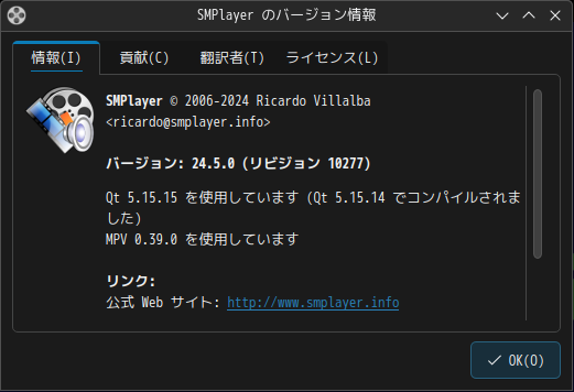 マルチメディアプレイヤーとして、「SMPlayer」を使用します。