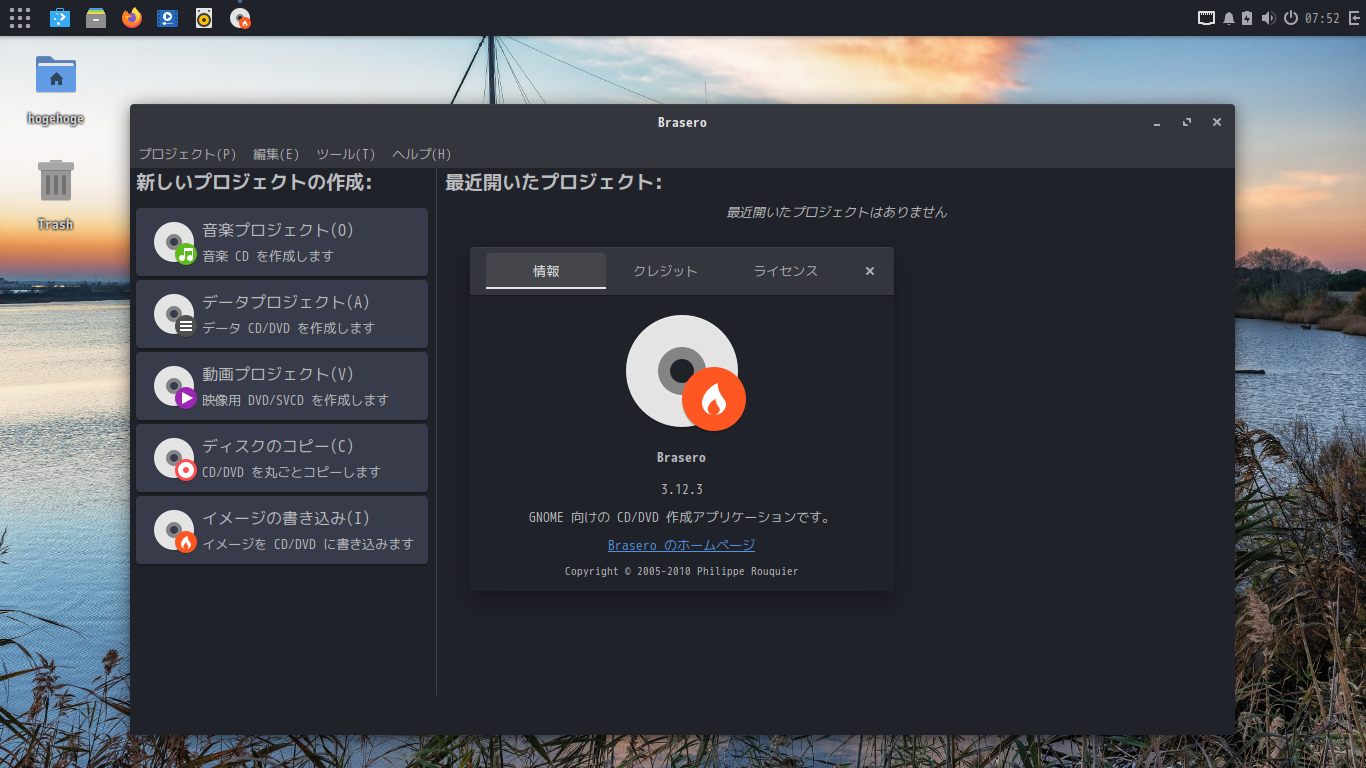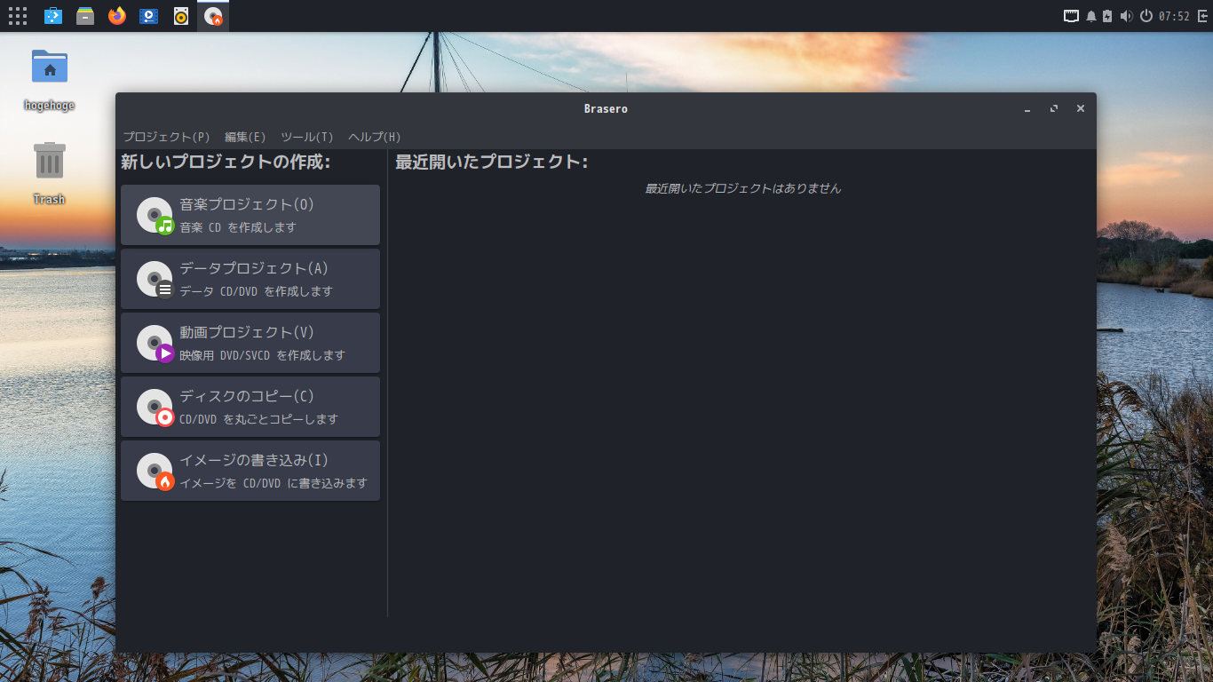 1. 概要 光ディスクライティングソフトとして、「Brasero」を使用します。 2. インストール 「ソフトウェアセンター(solus-sc)」で、「brasero」で検索してインストールします。 3. 起動 「スタート」→「Sound & Video」→「Brasero」