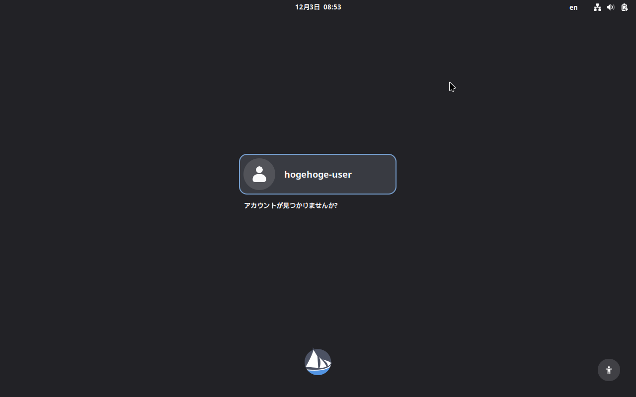 以降の手順は、「Solus - 4.8 - 共通事項」に記述している手順と同様です。 ログイン画面が表示されれば、インストールは完了です。 ログイン画面で、「GNOME」と「GNOME on Xorg」との選択肢がありますが、「VirtualBox」上で操作する場合は、「GNOME on Xorg」を選択します。 |