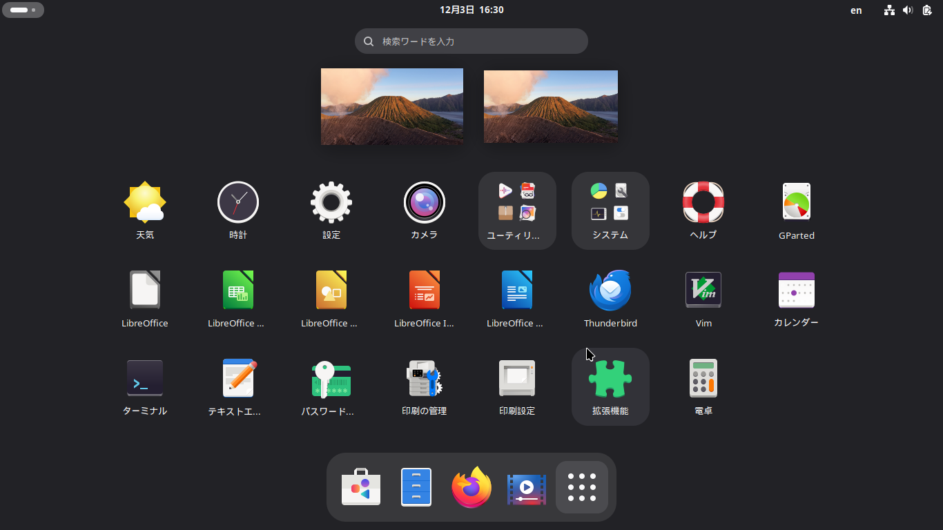 「GNOME」の共通的な操作やカスタマイズ方法に関しては、「GNOME - 共通事項」をご参照ください。