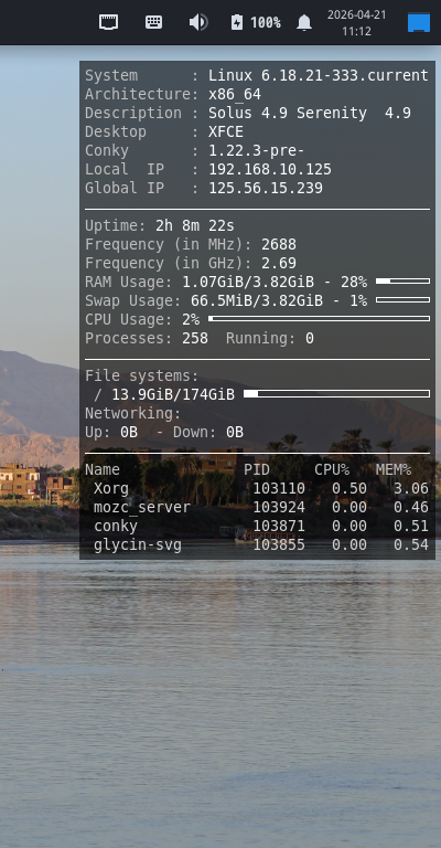 再ログイン後、デスクトップ右に、「Conky」の表示が現れます。
