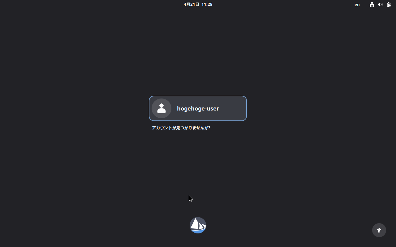 以降の手順は、「Solus - 4.9 - 共通事項」に記述している手順と同様です。 ログイン画面が表示されれば、インストールは完了です。 前回まで、ログイン画面で、「GNOME」と「GNOME on Xorg」との選択肢がありましたが、なくなったようです。 |