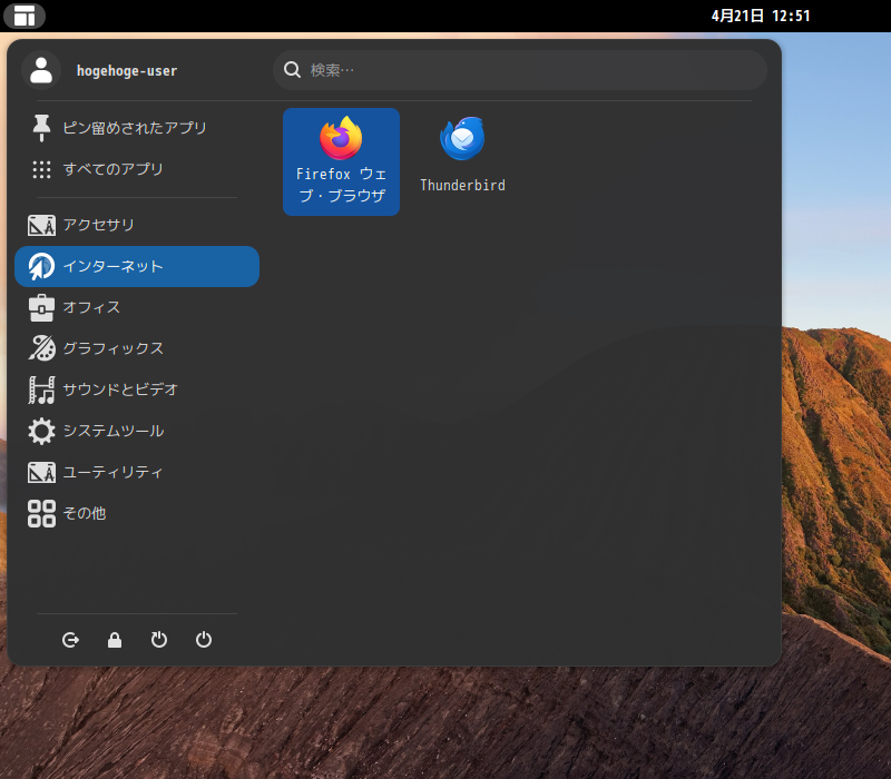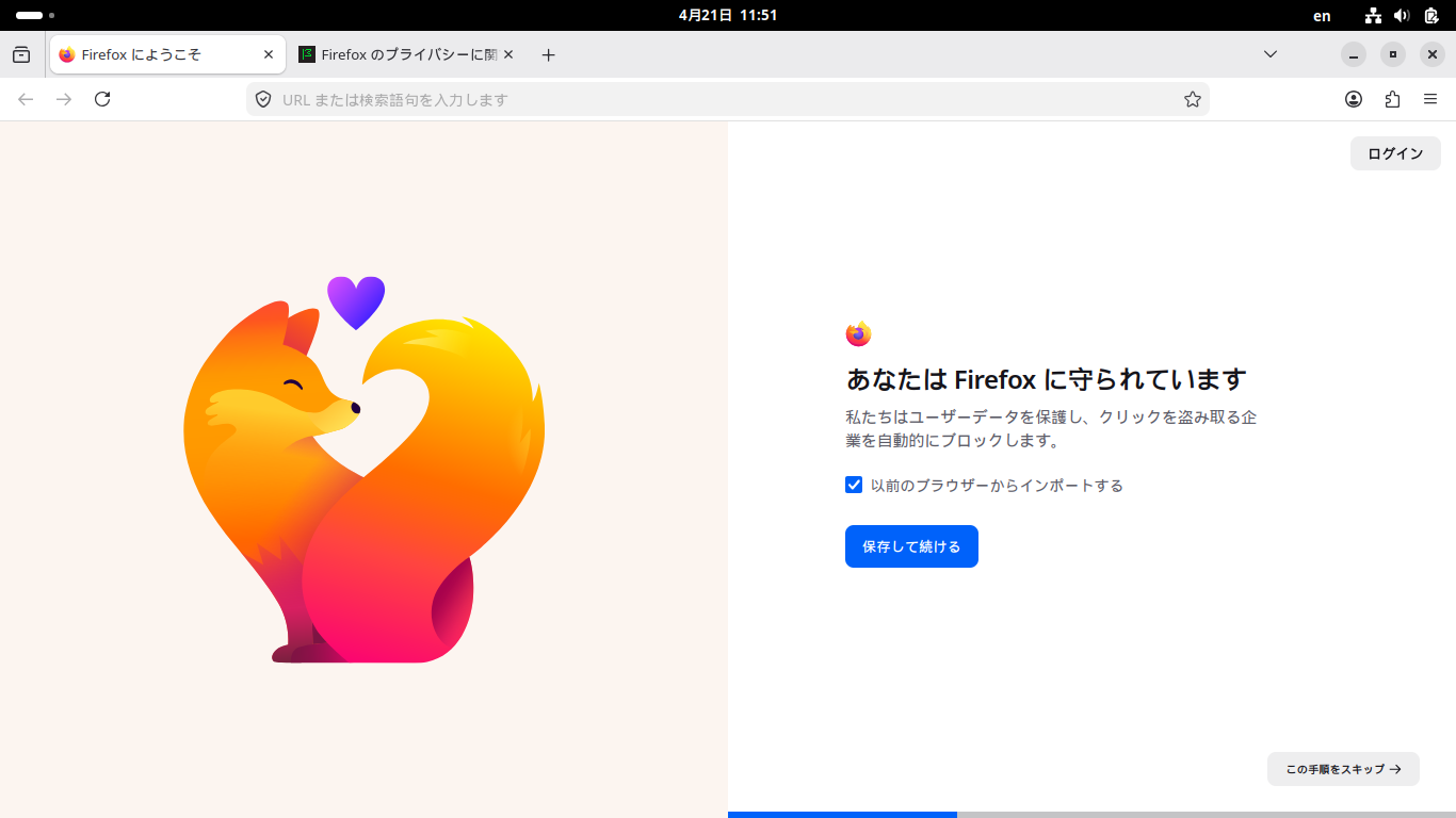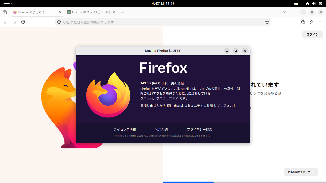 ブラウザとして、「Firefox」がデフォルトでインストールされ、日本語化されています。