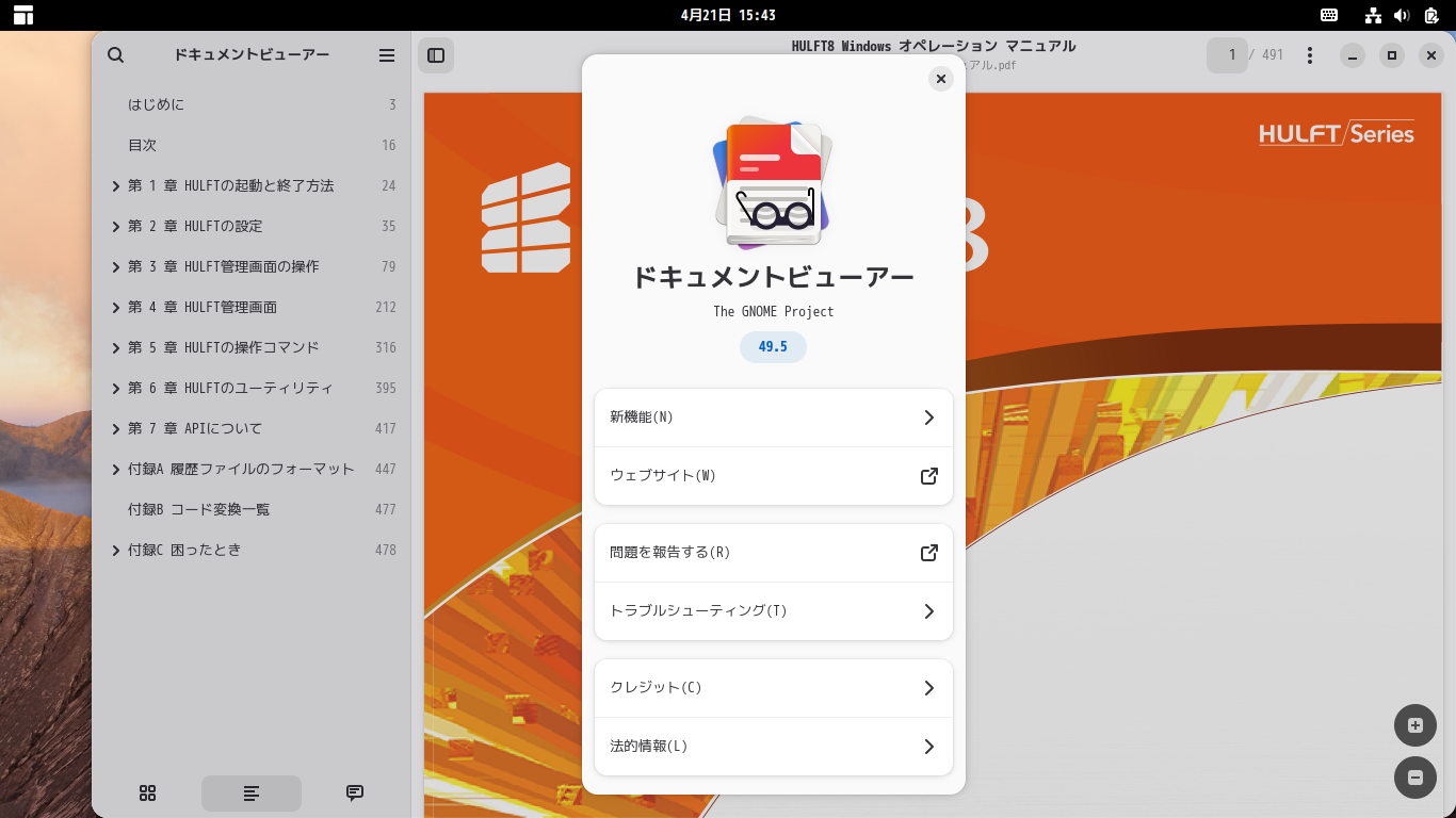 1. 概要 ドキュメントビューアとして、「Evince」を使用します。 「Evince」は、デフォルトでインストールされています。 2. 起動 「スタート」→「オフィス」→「ドキュメントビューアー」