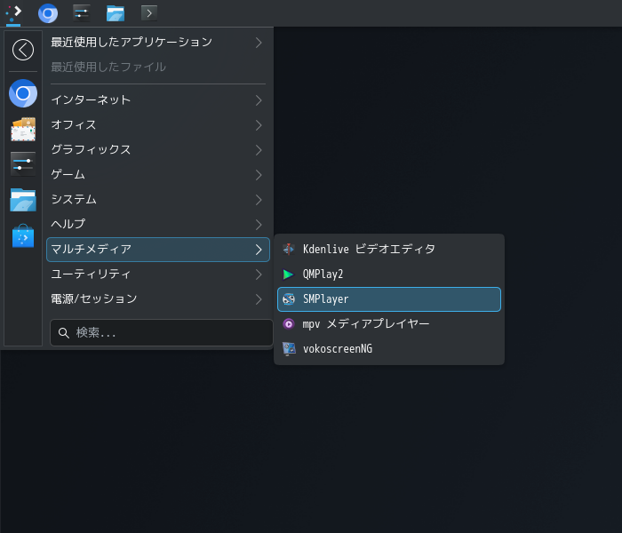 1. 概要 マルチメディアプレイヤーとして、「SMPlayer」を使用します。 2. インストール 「Dnfdragora」で、「smplayer」を検索して、インストールします。 3. 起動 「スタート」→「マルチメディア」→「SMPlayer」