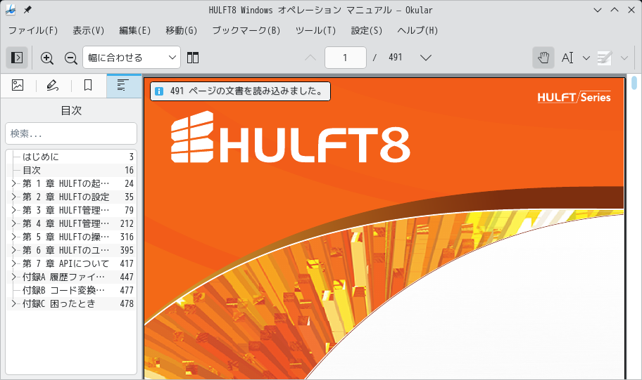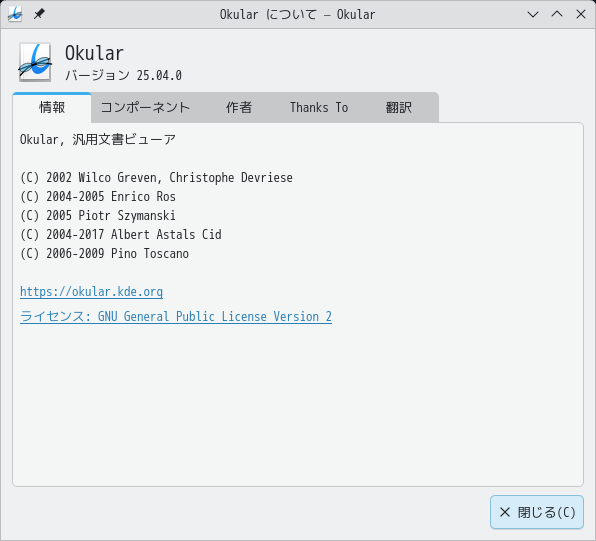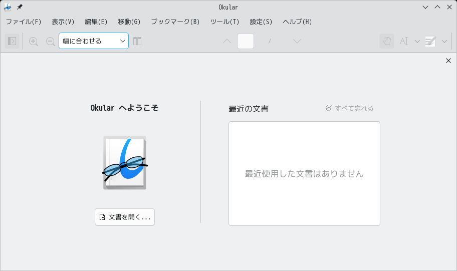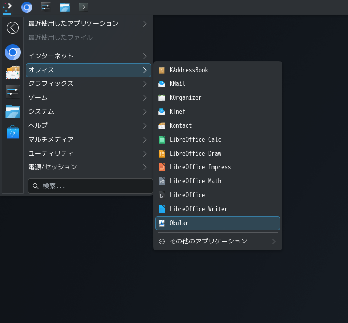 1. 概要 ドキュメントビューアとして、「Okular」を使用します。 「Okular」は、デフォルトでインストールされています。 2. 起動 「スタート」→「オフィス」→「Okular」