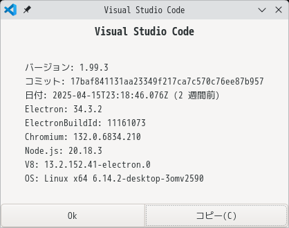 「Visual Studio Code」のダウンロードサイトから、「rpm」のパッケージをダウンロードします。