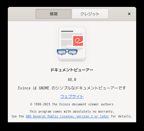1. 概要 ドキュメントビューアとして「Evince」を使用します。 「KDE」上に、「GNOME」をインストールしていますので、「Evince」は、デフォルトでインストールされています。 2. 起動 「Utilities」→「ドキュメントビューア」