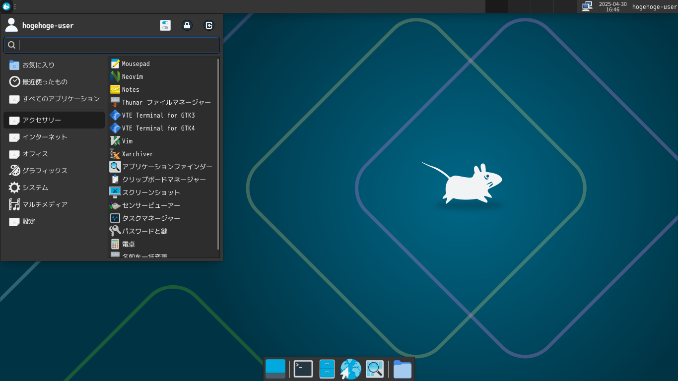 「XFCE」の共通的な操作やカスタマイズ方法に関しては、「XFCE - 共通事項」をご参照ください。
