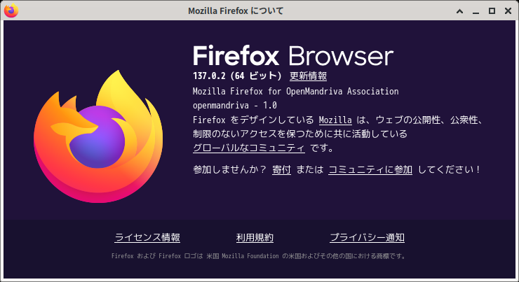 1. 概要 ブラウザとして、今まで「Falkon」がデフォルトでインストールされていました。 今回は、ブラウザがインストールされていなかったので、「Firefox」をインストールして使用します。 2. インストール 「Dnfdragora」で、「firefox」を検索して、インストールします。 3. 起動 「スタート」→「インターネット」→「Firefox」