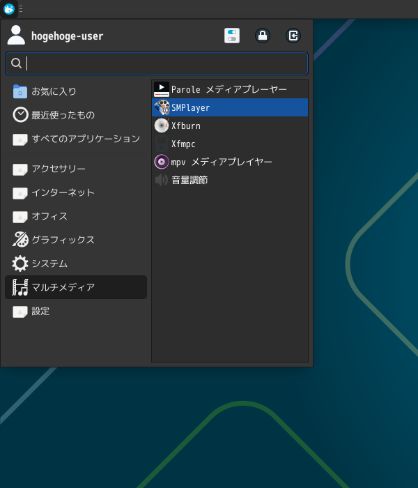 1. 概要 マルチメディアプレイヤーとして「SMPlayer」を使用します。 2. インストール 「Dnfdragora」で、「smplayer」を検索して、インストールします。 3. 起動 「スタート」→「マルチメディア」→「SMPlayer」