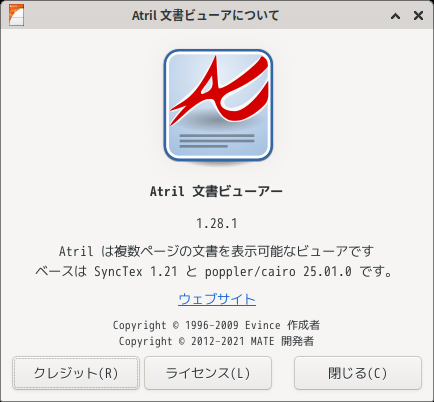 1. 概要 ドキュメントビューアとして「Atril」を使用します。 2. インストール 「Dnfdragora」で、「atril」を検索して、インストールします。 3. 起動 「スタート」→「オフィス」→「Atril 文書ビューア」